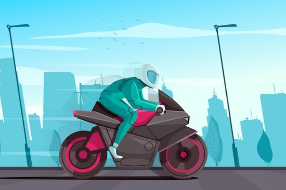 Gambar ; ilustrasi bersepeda motor berpakaian olah raga lengkap