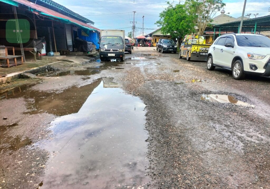 Sudah lebih dari enam bulan, hingga penghujung Desember tahun ini, pengunjung pasar harus merasakan ketidaknyamanan ekstrem akibat kerusakan jalan yang berubah menjadi kubangan air menyerupai danau.