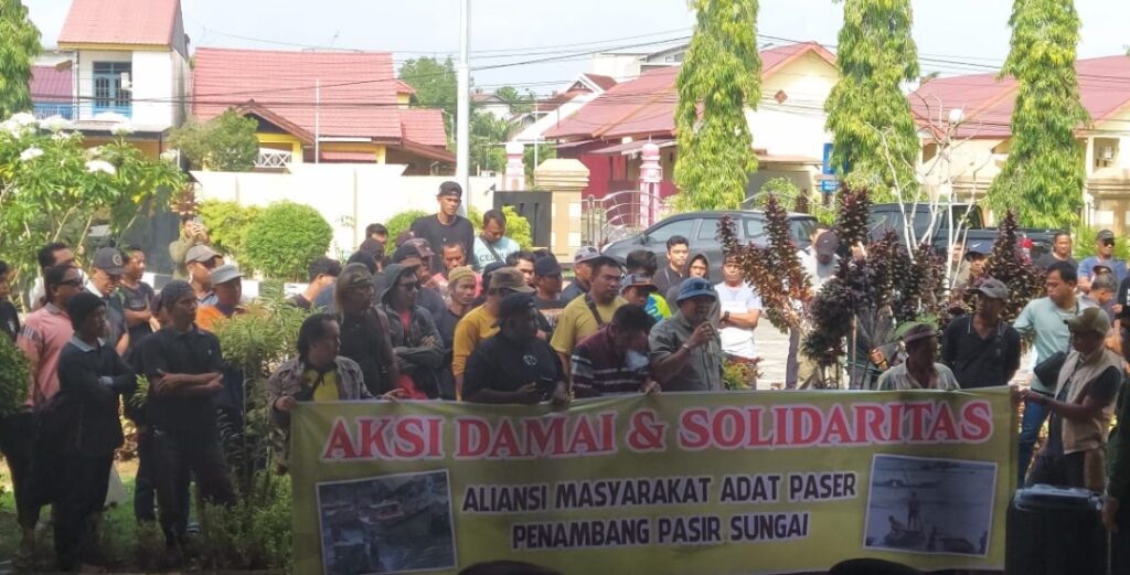 Gambar ; Aliansi Masyarakat Adat Paser bersama Penambang Pasir Sungai di depan Kantor DPRD Paser ( Senin 19/01)