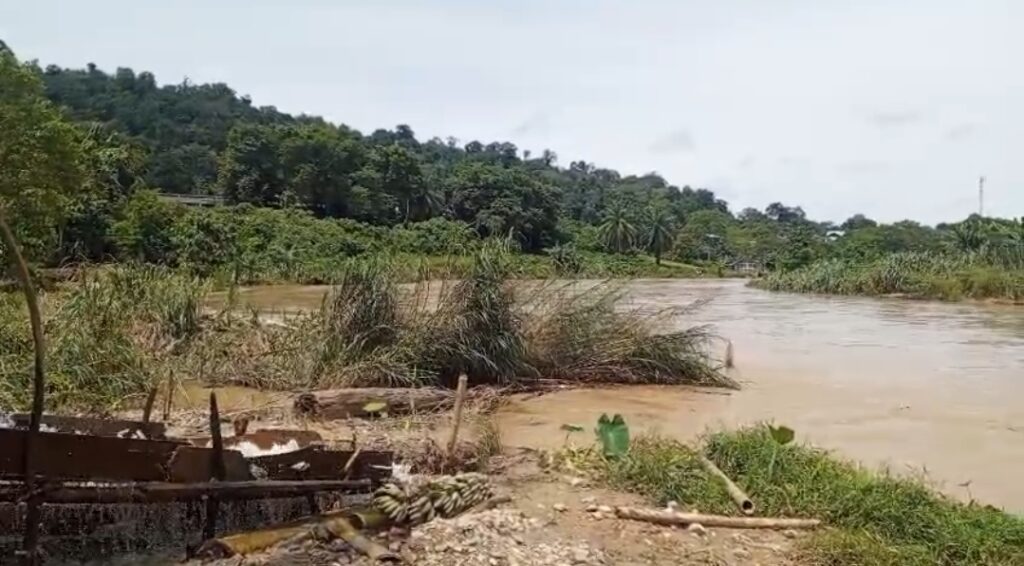 Ilustrasi ketinggian air di sungai Kandilo Muara Komam mulai terus meninggi mulai meluap.( Doc. Kontributor Kandilocom).
